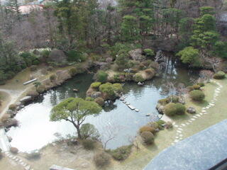 窓からは、すばらしい日本庭園が一望できます。難を言えば、磐梯熱海駅が近いので、踏み切りの音と、列車の通る音が聞こえる位ですね。