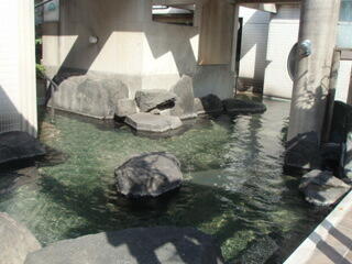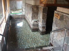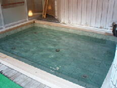 そして、露天を挾んで向こう側に、ぬる湯があります。今までの旅館で入った、ぬる湯に比べて、大きめだったのがうれしいです。ただ、ちと冷たいような気がします。冷たくて、なかなか入りづらかったですね。
