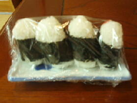 夜食。お腹がすいたので、サービスのミニおにぎりを、もらいにいきまし。