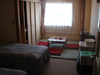 ところで、今回の部屋ですが、こじんまりとした和洋室で、なかなか落ち着けます。窓からは、山々とホテルのイルミネ−ションが見えて、なかなかよかったです。