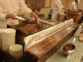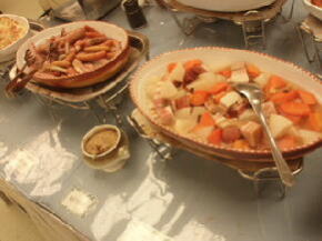 主なメニューは、ずわい蟹、蟹汁、石狩汁、ステーキ天ぷら、すし8種、さしみ類、中華料理10種、ホワイトカレー、オードブルいっぱい、デザートいっぱい、果物、アイス3種、ソフトドリンクバーもあり、さらに、離乳食や、お子さまのバイキング料理も、別のブースにありました。
