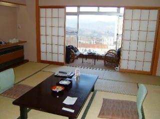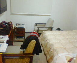 12畳くらいです。窓からの景色も最高です。部屋も一部改装したみたいできれいでした。もちろん、冷蔵庫、テレビ、お風呂などもあります。そして、パソコンも繋がってブログ開始。その後、ここのお風呂に入りに行きました。