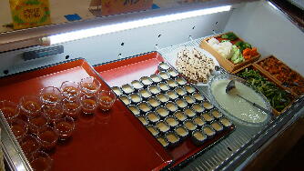 始めは、皆さん箸で取ってましたが、順番を無視する人が多く、両手でつかんでゲットしました。持ってきたと同時に数秒で無くなるのでたいへんでした。