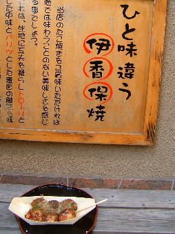 実は、伊香保焼きというたこやきで、ついつい食べてしまいました。周りがカリカリで中がトロトロで、たこがでかい!6個で400円ですが十分でした。