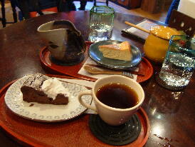 レトロな喫茶店で、ジャズが流れていていい雰囲気でした。とりあえずケーキセットを頼む。ガトーショコラを食べたんだけど、濃厚なビターなチョコで、まわりの生クリームと合って、かなりおいしかったです。