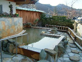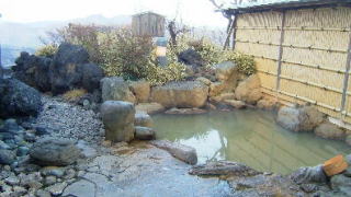 露天は、大きな樽風呂が二つありました。女性のほうは、広い岩風呂だったそうです。もちろん畳敷きでした。