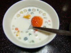 デザ−トも、でかいタピオカ入りココナツミルクで、いちごが入ってました。