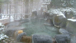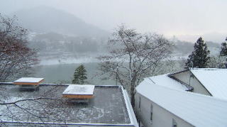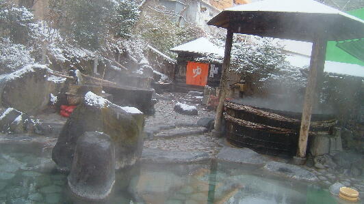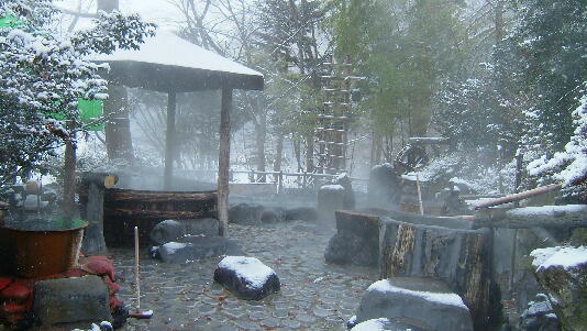朝は、いきなり雪が降って、昨日とは違う雪見露天も楽しめてラッキ−でした。