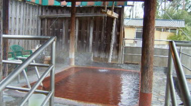 値段は、1050円で30分使えます。フロントから外に出て、大浴場の横に併設された露天に行きました。なかなか広くて、ここからも赤谷湖が見渡せます。