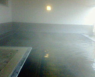 内湯は、L字型で、右が寝湯、真ん中が浴槽、左が強めのジャグジ−です。もちろんここもかけ流しの温泉なので、気持ちよく入れました。