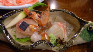 後、ボタン海老がでかいのです。二口で食べた位肉厚。山菜釜飯も松茸の土瓶蒸しもおいしかったし、豚なべもよかったです。