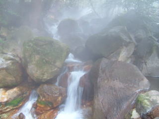 5分位で到着し、写真を撮りまくりました。そして新たな事実がわかりました。昨日、暗くてわからなかったけど、上に二つほど露天があったのです。ここは、湯槽が8つあったのです。周りには誰もいない...。入っちゃえー!と服を脱いで、お湯を堪能しました。