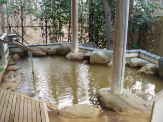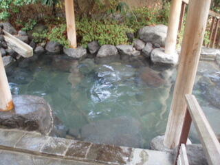 露天は、さらに岩風呂があり、黄金の湯が入ってます。