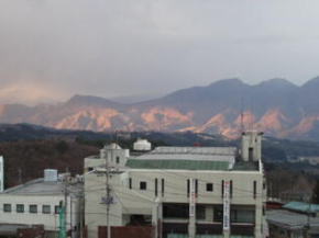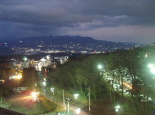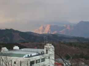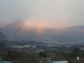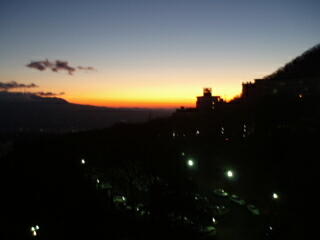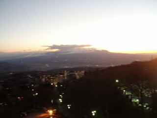 露天から見た夕焼け。だんだんと、右の方に光が動いて、霧とともに消えていきました。