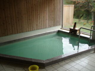 泉質は、含硫黄ナトリウムカルシウム硫酸塩塩化物泉で、エメラルドグリーンのお湯でした。中は、白いのと、黒い湯の華が舞っていて、少し白く濁り気味でした。硫化水素型なので、硫黄のツーンとした匂いが漂ってました。