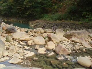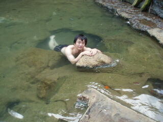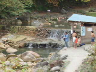 一人おじいさんがいて、今から、ダムの放流が始まるという事を聞いて、やめようと思ったんだけど、少し入りました。お湯が少なめになっていたけど、やはり暖かったです。お湯がきれいで、透き通ってました。