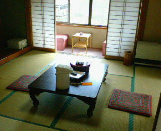 川の湯から帰って、とりあえず部屋に入ったんですが、二畳の化粧部屋があり、八畳の部屋が奥にありました。広くてなかなかきれいですよー。