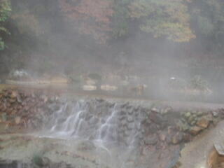 川の湯に、入った感じの熱さは、38度位かなー。すごく入りやすくて、紅葉を見ながら、二時間も入ってました。
