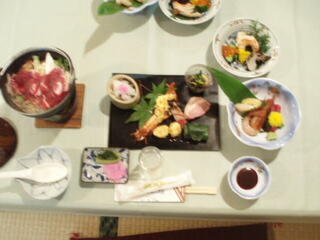 いよいよ夕食です。今日は、8品程度の懐石料理ということで、少ないなーと思ってたら、びっくりでした!