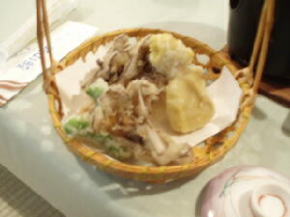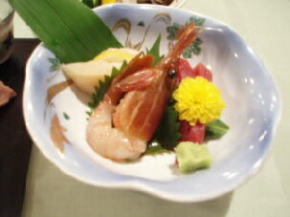 車海老のマヨネーズ和えなどは、驚く位おいしかったです。お造りも、ボタンエビ、まぐろ、ほたてがあり、酢のものにも、えび、いくらが、きゅうりの上に乗ってたり、炊き合わせにも、里芋の上にいくらが、乗ってました。