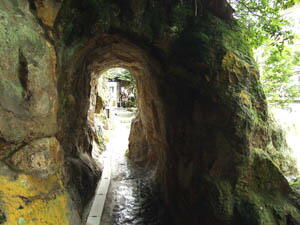 天井が低いので、頭を下げて慎重に歩く。手堀りで作ったのはすごいです。子供達が暴れてゆっくりできず、外のトンネルを抜けて、奥の露天風呂へ。