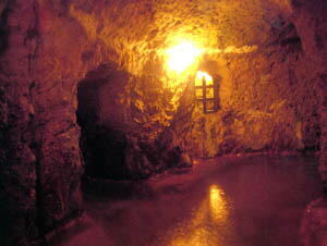 途中、女性専用の洞窟風呂があり、少し歩いた所に男性用がありました。入り口に籠が置いてあり、そこが脱衣所みたい。中に入ると、縦横無尽に洞窟があり、中は天然サウナ状態でした。お風呂はかなり浅いので、お風呂に入ると言うよりは、天然ミストサウナって感じです。