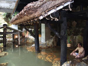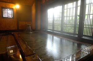 お湯は緑色で、泉質は酸性泉です。効能は、外傷・皮膚病・リューマチなどです。