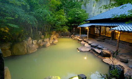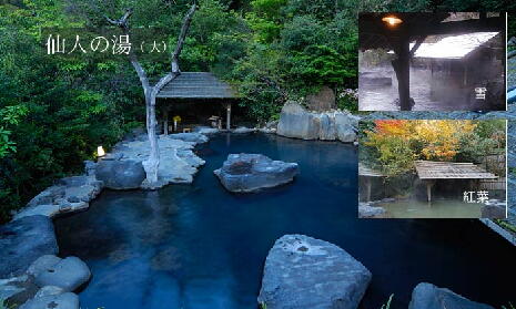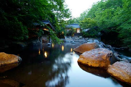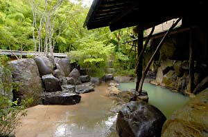 鮮やかな樹々の緑と、みずみずしい紫陽花に疲れがとける「あじさいの湯」。懐かしさが新しい「水車の湯」や、女性専用露天風呂・「かしかの湯」など、温泉紀行の楽しみは尽きることかありません。