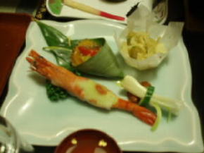 さしみは、ボタンエビ、イカ、鮪、白身の魚で、なかなか充実してました。