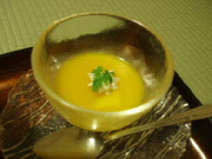 料理の内容は、ステーキ、前菜4種、さしみ4種、さしみこんにゃく、あんかけ蟹焼売、秋のカブラ味噌田楽、じゃがいもの挽肉辛味噌炒めグラタン風、茶碗蒸し、揚げ物、えびしんじょうのお吸物、マンゴープリンです。