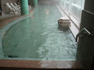 少し緑がかったお湯で、なぜか硫黄臭がしなかったのが不思議です。