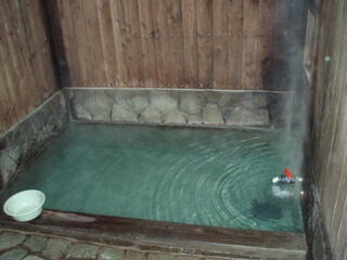 女性の方は、内湯が正方形の小さめの湯槽で、露天が、陶器のお風呂と、檜のお風呂があります。