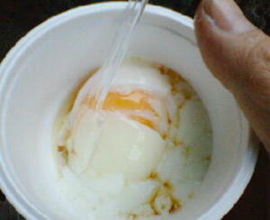 値段は120円で、たれが付いてます。やっぱり作りたての半熟はおいしいねー。