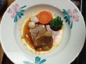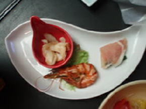 お造りも、マグロ、カンパチ、甘エビがあり、牛ワインソース煮も、甘くて柔らかい肉でおいしかったです。