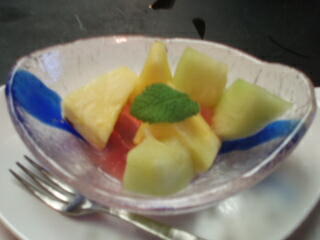 そして、最後のデザートに、今まで食べた事がないサボテンゼリーがあったんです。中にグレープエキスが入ってるので、グレープの味だったけど、触感は、アロエみたいです。フルーツは、パイン、メロンが入ってました。