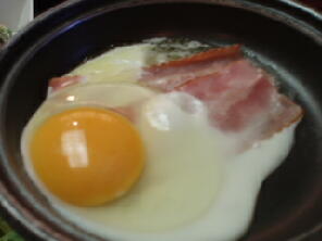 ベーコンエッグを、鍋で作ったのは初めてかも。