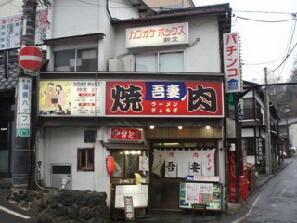 一軒目は、焼肉吾妻です。焼肉屋だけに、カルビ串などの、牛肉、豚肉系の味付けが最高なんです。カルビ串なんか、マジウマでした。安くて、いつもやってるので、湯畑前に座って、食べてる人が多いです。