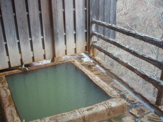 泉質は、ナトリウム塩化物泉と書いてたけど、いろんな有機物が含まれていて、乳緑色になってるんですね。