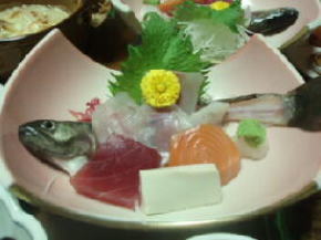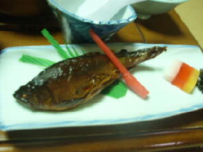 今日の料理は、ボタン鍋、蟹爪、岩魚の刺身他3種、ヤマメの甘露煮、豪華な前菜、おこわ、茶碗蒸し、グラタン、煮物など、とにかく種類が多くて、ボリュームがあるんですよ。(*^□^*)