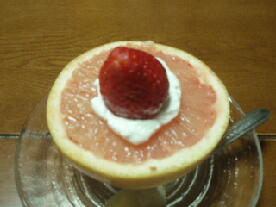 デザートも、ピンクグレープフルーツの上に、生クリームが乗って、おいしい苺がさらに乗ってました。完璧です。