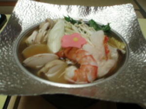 ずわい蟹を筆頭に、生うにの入ったさしみ、魚介の鍋、ほたるいかの沖漬け、魚の西京焼き、鯛のカブラ蒸し、ビーフシチュー、抹茶うどん、オードブル5種などです。
