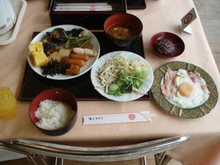 今回の朝食は、和定食とバイキングの二つをチョイスできました。初めは、やはりバイキングからです。