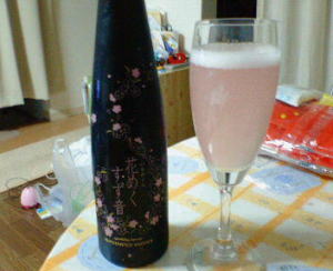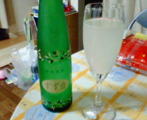 これは、うまいですよ-。やっぱり、甘酒のあっさりしたような味なんですけど、すっきりしておいしいんです。スパ−クリングワインを飲んでる感じです。1本830円なので、そんなに買えないけどね-。