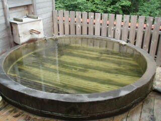 前回も行った所なんですけど、今回は、貸切温泉に入れました。大きな桶風呂で、かなり良かったですよ-。やはりここは黒湯でした。