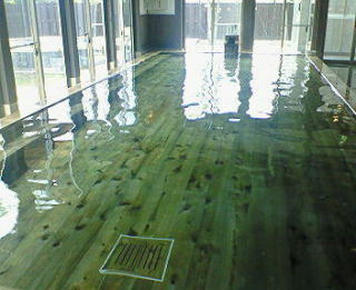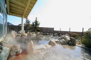 内湯が、檜のでっかい湯槽と、小さい湯槽があって、露天が檜の丸い露天で、横に、フィンランドサウナがあります。