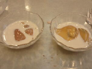 おもしろかったのは、プーアル茶やウーロン茶をゼリーにしたものを、甘いミルクに浮かばせたデザートが、かなりうまかったですね。