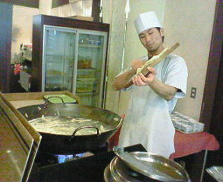 刀削麺は、その場でうどん?の固まりを、目の前で削って、茹でるんですが、これがうまいんですよ!