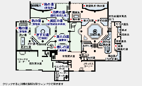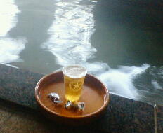 こんな感じです。いっぱいあって、回るのがたいへんですよね-。2泊位しないと、ゆっくり入れないと思います。ここで、おもしろいと思ったのは、露天に、売店があり、お酒やビ−ル、チュ−ハイ、ジュ−スなどが、お風呂の中で飲めるのです。これは、なかなか他の旅館では体験できないです。