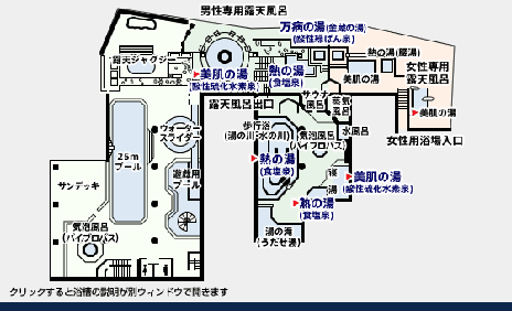一階ジャグジ-と熱の湯、この横に寝湯(美肌の湯、酸性硫化水素泉)