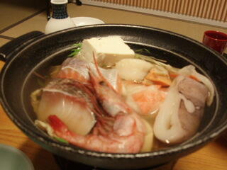 ほたて、サーモン、ボタン海老、白身魚、野菜などが入った北海鍋がおいしかったですねー。だしは、あっさりめで、いろんなだしが出ていて、おいしかったです。なかなかボリュームある鍋でした。